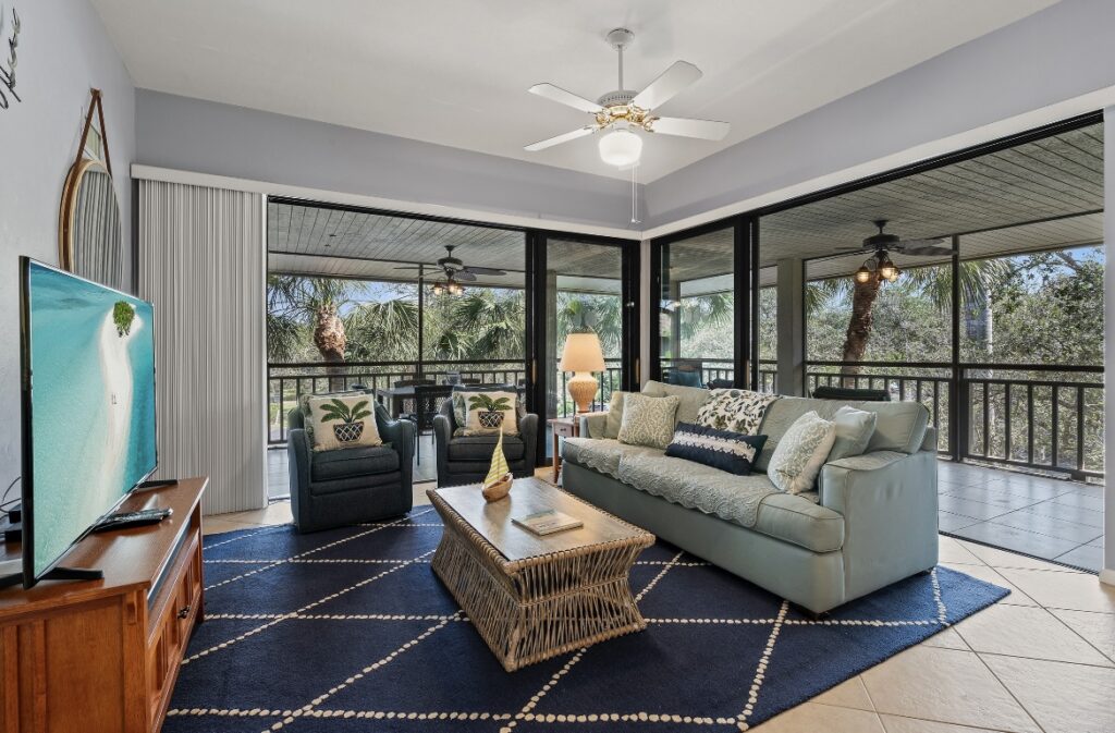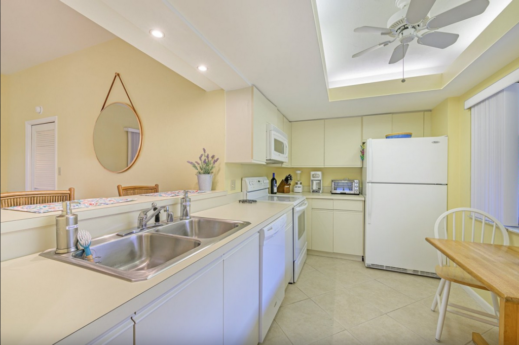 Renovated in 2021, you’ll find a King bed in the primary bedroom & a Queen and XL Twin bed in the guest bedroom with elite Tufts and Needle mattresses. Enjoy high-speed internet and cable TV powering the 55″ TV in the living area and 43″ TV in both bedrooms. Be part of nature as you view your surroundings through an 8′ high sliding glass door system enabling 16′ of panoramic open air to the lanai and beyond. The condo has Luxury laminate flooring throughout. The kitchen is fully stocked with all the kitchenware you will need. The pool, hot tub and pool house amenities areas are just steps outside your door.
